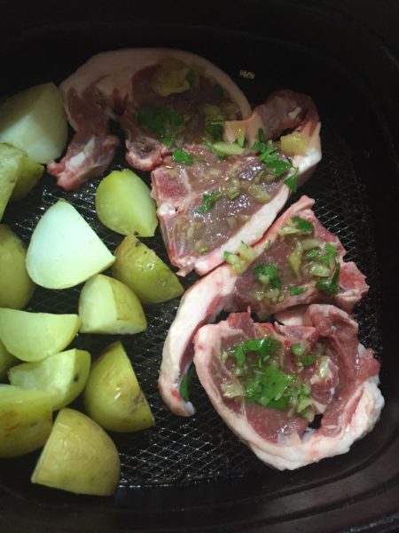 - Place lamb chops in airfryer. Coat with garlic/parsley mix.