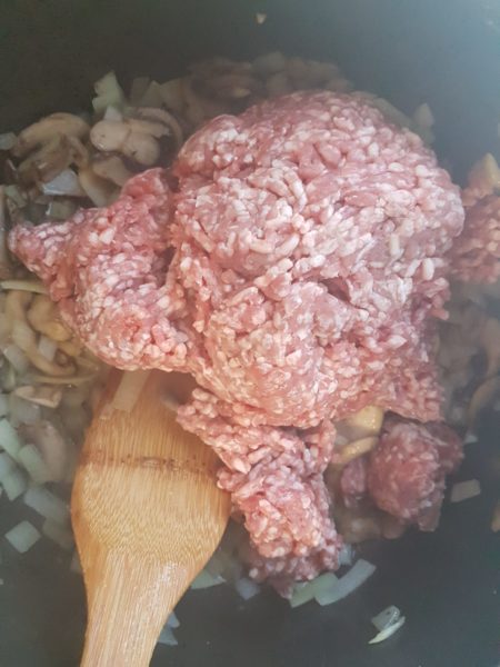 Add the minced beef and cook until brown.