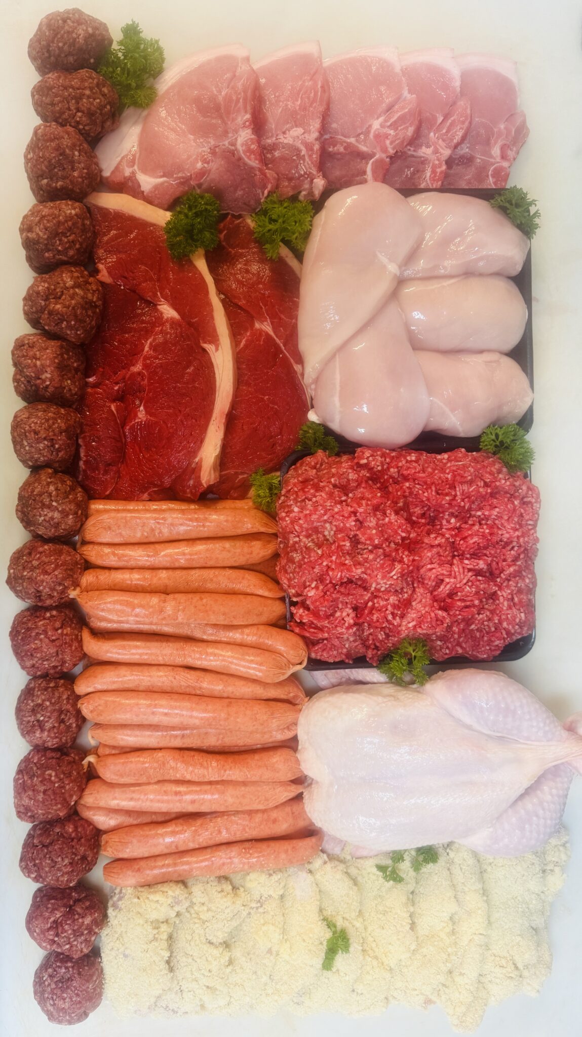 Our Family Pack C contains various beef, chicken and lamb cuts. All items are gluten, egg, dairy free excluding the schnitzels which contain Gluten.
