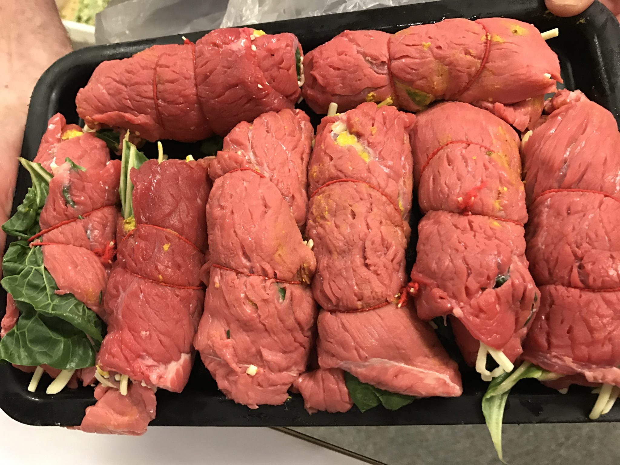 Beef steak filled with mustard, cheese and spinach.