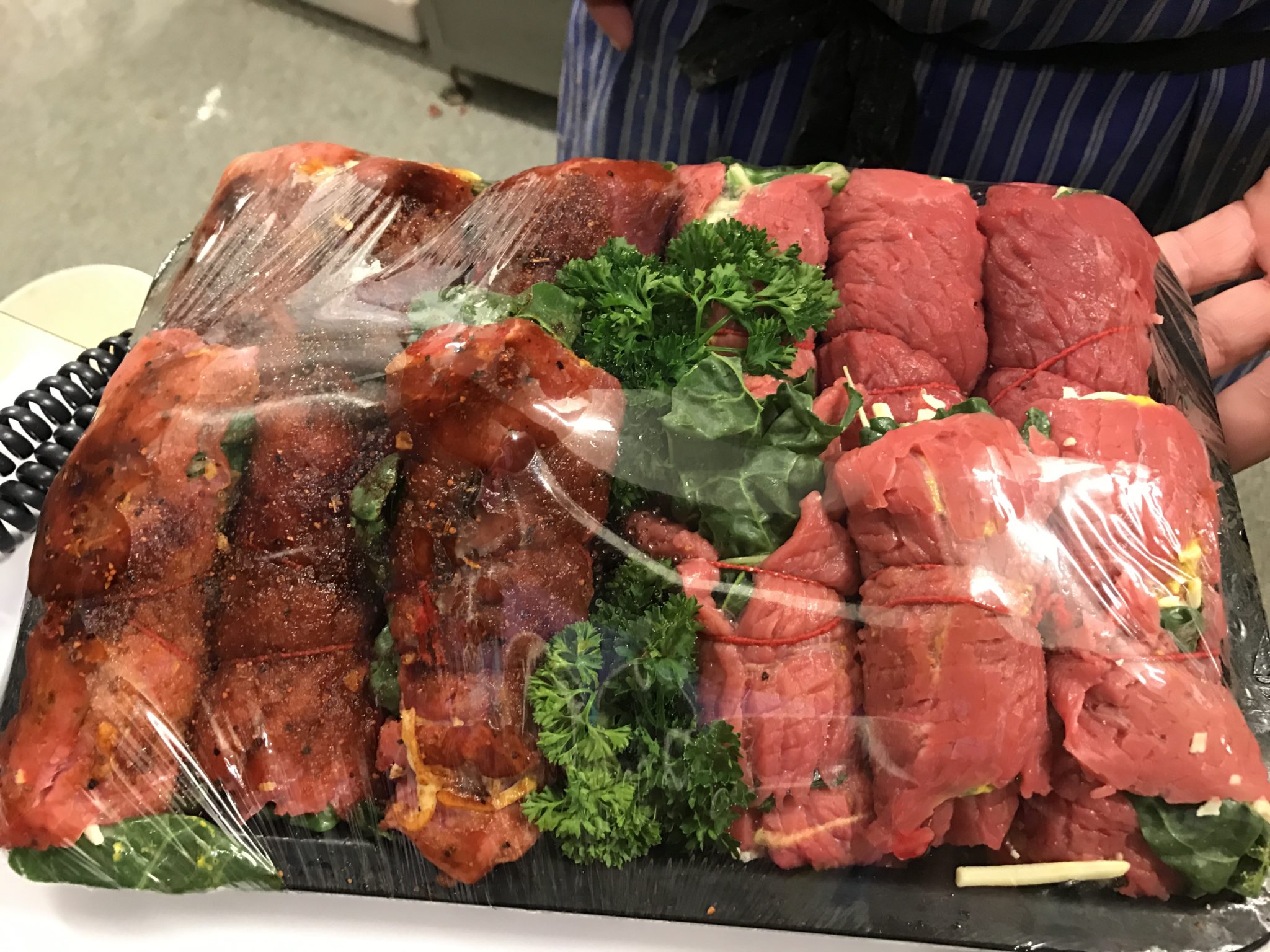Our Popeye Steaks are grass-fed beef steaks filled with mustard, cheese and spinach.